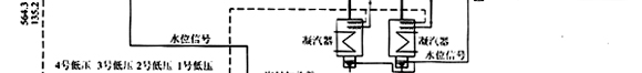 純凝工況時(shí)正常補(bǔ)水進(jìn)冷凝器,高壓除氧器水位由汽封加熱器出口調(diào)節(jié)閥V1控制;冷凝器熱井水位由其進(jìn)水調(diào)節(jié)閥V2控制。
