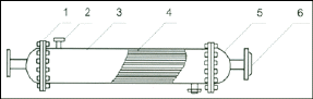 1.法 蘭 2.進出口節(jié)管 3.殼 體 4.列 管 5.封 頭 6.進出口管