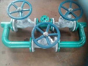 一、 系統(tǒng)簡(jiǎn)介及工作原理 1. 膠球清洗裝置系統(tǒng)簡(jiǎn)介 膠球清洗裝置主要由收球網(wǎng)、二次濾網(wǎng)、裝球室、膠球泵、電氣控制柜等部件組成。對(duì)于大機(jī)組采用單元制系統(tǒng)即凝汽器每一側(cè)使用收球網(wǎng)、裝球室、膠球泵各一臺(tái);對(duì)于小機(jī)組通常采用共用制系統(tǒng),膠球清洗時(shí)先把比冷卻管內(nèi)徑大1-2mm的海綿膠球放入裝球室,在膠球泵的作用下膠球被送入循環(huán)水進(jìn)水管,隨著循環(huán)水的流動(dòng),膠球被擠入凝汽器銅管中進(jìn)行擦洗,膠球通過(guò)凝汽器銅管后與循環(huán)水一起進(jìn)入收球網(wǎng),隨后被膠球泵抽出,再進(jìn)入裝球室。如此循環(huán),膠球不斷擦洗凝汽器冷卻管內(nèi)壁,使之保持清潔。 使用這種裝置可在機(jī)組不減負(fù)荷的情況下清洗凝汽器,提高凝汽器的傳熱效率,防止汽輪機(jī)熱效率因背壓升高而降低,同時(shí)可防止冷卻管因結(jié)垢而腐蝕,延長(zhǎng)冷卻管的使用壽命,是節(jié)能和改善勞動(dòng)條件的理想設(shè)備。 二、膠球清洗裝置各組成部份的性能及結(jié)構(gòu)簡(jiǎn)介 1. 收球網(wǎng) 膠球清洗裝置的關(guān)鍵設(shè)備是收球網(wǎng),其效果決定于收球率,而收球率又決定于收球網(wǎng)的完善度。過(guò)去,收球網(wǎng)有SL型與SF型等種類,實(shí)踐證明這類收球網(wǎng)效率低,膠球損失大,主要表現(xiàn)在:收球率低而不穩(wěn)、嚴(yán)密性差、卡球等;膠球泵出力不足時(shí),收球率明顯下降;收球網(wǎng)水力工況不穩(wěn)時(shí),收球率也明顯下降。 我公司針對(duì)現(xiàn)有收球網(wǎng)的上述缺點(diǎn),根據(jù)循環(huán)水進(jìn)出管的直徑大小,設(shè)計(jì)了單板式SD型收球網(wǎng)(適用于公稱直徑≤DN900的母管中)和“V”型雙板式SQ型收球網(wǎng)(可用于公稱直徑≥DN800的母管中)兩大系列。 1.1 單板式收球網(wǎng)(SD型) SD型單板式收球網(wǎng)在保持了原有收球網(wǎng)相對(duì)穩(wěn)定性的基礎(chǔ)上,在內(nèi)部網(wǎng)板及下部出球口處進(jìn)行了針對(duì)性的改進(jìn)設(shè)計(jì),使得網(wǎng)板呈整體式結(jié)構(gòu),采用隔圈、螺桿壓緊式結(jié)構(gòu),保證各柵條間的距離及整體的強(qiáng)度,不夾球、不變形;出球口加裝了一套“壓頂裝置”防止網(wǎng)板經(jīng)長(zhǎng)期運(yùn)行產(chǎn)生變形與出球口貼合不牢。 1.2 雙板式收球網(wǎng)(SQ型) SQ型收球網(wǎng)是一種新型收球網(wǎng),具有以下特點(diǎn):①改變收球網(wǎng)的結(jié)構(gòu)型式,收球時(shí),網(wǎng)片呈“V”型,雜草、雜物及膠球集中于網(wǎng)片底部,有效地克服了跑球、卡球現(xiàn)象。不收球時(shí),網(wǎng)片呈“A”型狀,可以對(duì)網(wǎng)片進(jìn)行反沖洗。②采用強(qiáng)制性回收膠球機(jī)構(gòu),把膠球及雜物直接送到膠球泵入口處。③去除了關(guān)斷閥、調(diào)節(jié)閥等活動(dòng)部件,使其結(jié)構(gòu)簡(jiǎn)單,操作方便且體積也比原來(lái)的收球網(wǎng)縮小了1/3。④由于采取了強(qiáng)制回收,所以對(duì)膠球泵出力要求不高,且不受流速、流量大小的影響,膠球回收率可達(dá)95%以上。 該型號(hào)的收球網(wǎng)由筒體、柵網(wǎng)板、電動(dòng)推桿、螺旋輸送機(jī)構(gòu)等部件組成,收球時(shí),柵網(wǎng)板呈“V”型,膠球雜物及水垢等沿柵網(wǎng)板表面下滑到收球網(wǎng)底部,并被螺旋機(jī)構(gòu)強(qiáng)制送到膠球引出管,由膠球泵抽吸至裝球室進(jìn)行下一輪清洗。不收球時(shí),利用電動(dòng)推桿,曲柄機(jī)構(gòu)使柵網(wǎng)板呈“A”型,此時(shí)既可以減小水阻,又可以利用水流對(duì)柵網(wǎng)板進(jìn)行反洗,使遺留在柵網(wǎng)板上的雜物被水流沖去,保證收球效率。 2. 二次濾網(wǎng) 二次濾網(wǎng)是冷卻水凈化裝置的主要設(shè)備之一,它清除了大于6mm以上的雜物,對(duì)保障膠球的暢通無(wú)阻和凝汽器的正常工作,起到了關(guān)鍵作用。 我公司生產(chǎn)的二次濾網(wǎng)有:外旋式濾網(wǎng)(WE型)、切換式濾網(wǎng)(FE型)、電動(dòng)射流反沖式濾網(wǎng)(DYL型)、全密封電力傳動(dòng)反沖式濾網(wǎng)(DII型)可供選擇。詳見(jiàn)專項(xiàng)說(shuō)明書。 3. 裝球室 裝球室是膠球清洗裝置中用于放球、取球、存儲(chǔ)和觀察膠球循環(huán)情況的裝置。它由外殼、漏斗、切換閥等組成,并配有觀測(cè)窗、放氣、放水閥門等。 4. 膠球泵 膠球泵是膠球清洗系統(tǒng)中使膠球進(jìn)行不斷循環(huán)的動(dòng)力設(shè)備。該泵是一個(gè)專用的無(wú)障礙離心泵,其葉輪由兩葉片構(gòu)成的管狀通道,具有不堵塞、不切球和膠球磨損小等優(yōu)點(diǎn)。 5. 分匯器 分匯器是一個(gè)三通(管)閥。通過(guò)其中導(dǎo)向板的切換可使膠球進(jìn)入需要清洗的一側(cè)凝汽器中。它也可作為收球網(wǎng)膠球引出管的匯合和膠球管的分流三通管使用。 供應(yīng)定壓補(bǔ)水裝置|全自動(dòng)軟水器|ECH全自動(dòng)加*裝置|容積式/半容積式熱交換器, 浮動(dòng)盤管熱交換器|板式熱交換器|定壓補(bǔ)水真空脫氣機(jī)組|旁流水處理器|全程綜合水處理器|動(dòng)態(tài)離子群水處理機(jī)組|穩(wěn)壓膨脹器|凝結(jié)水回收器|疏水自動(dòng)加壓器|水箱水處理機(jī)|除鐵除錳過(guò)濾器|智